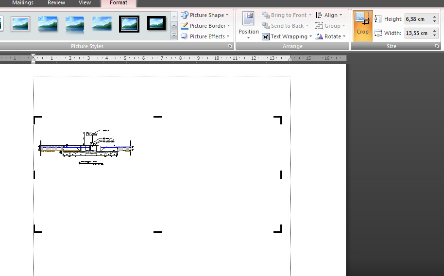 Biasanya orang awam yang memasukkan gambar dari Cad ke word akan melakukannya dengan cara copy paste, cara ini memang cepat dan mudah namun memiliki kekurangan dimana gambar yang di import dari cad ukurannya tidak sesuai dan memakan banyak space pada halaman kerja Ms. Word.contohnya seperti gambar di bawah ini: